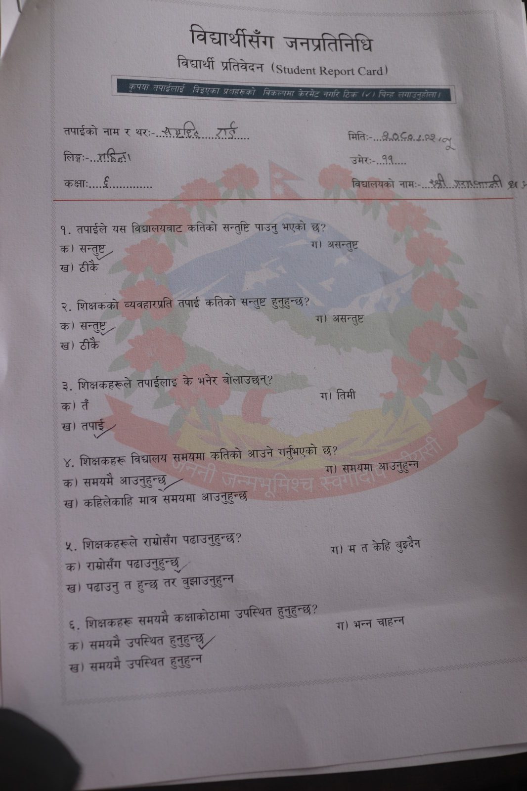विधार्थीहरूले पनि राम्रा कुरा र समस्याका बारेमा जानकारी गराएका थिए।