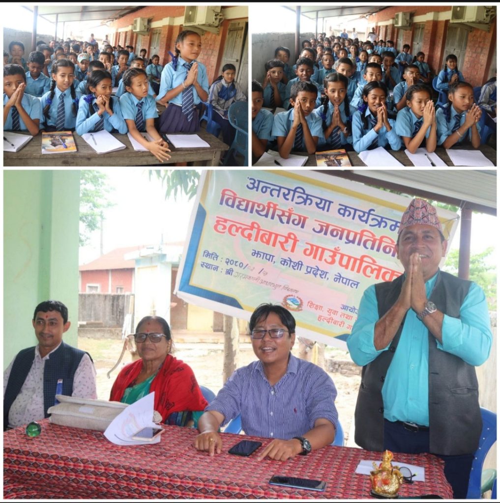 झापा। हल्दिबारी गाउँपालिकाले पहिलो पटक विधार्थीसँग जनप्रतिनिधि अन्तरक्रियात्मक कार्यक्रम गरेको छ।
