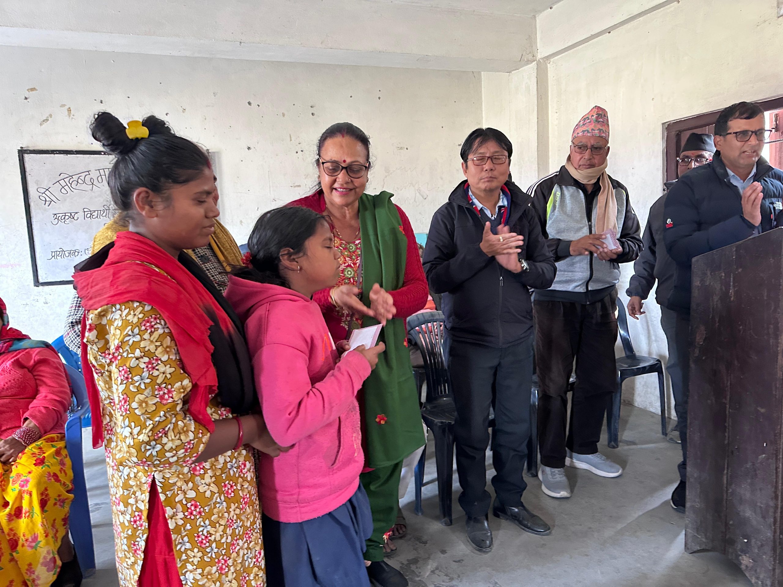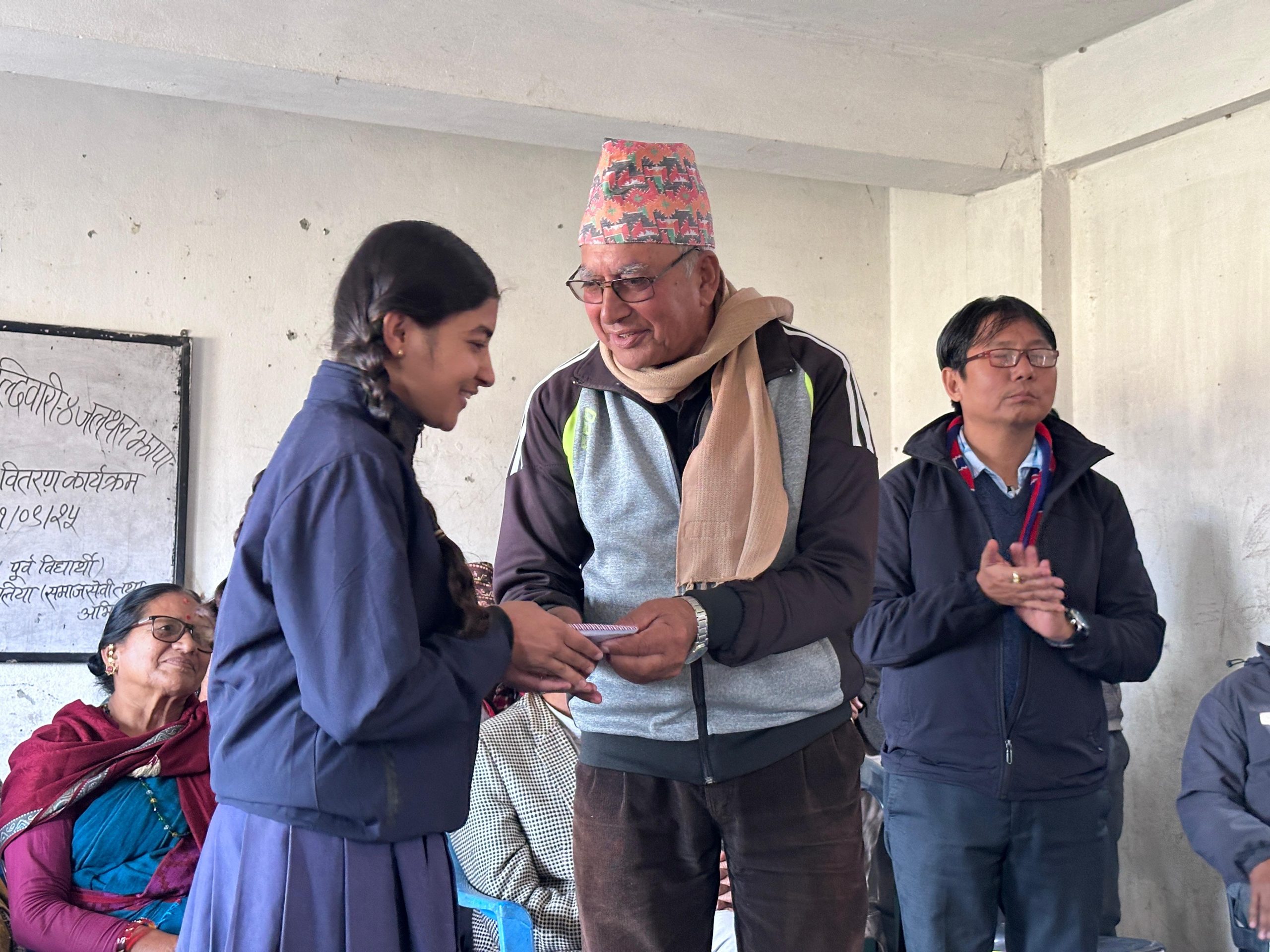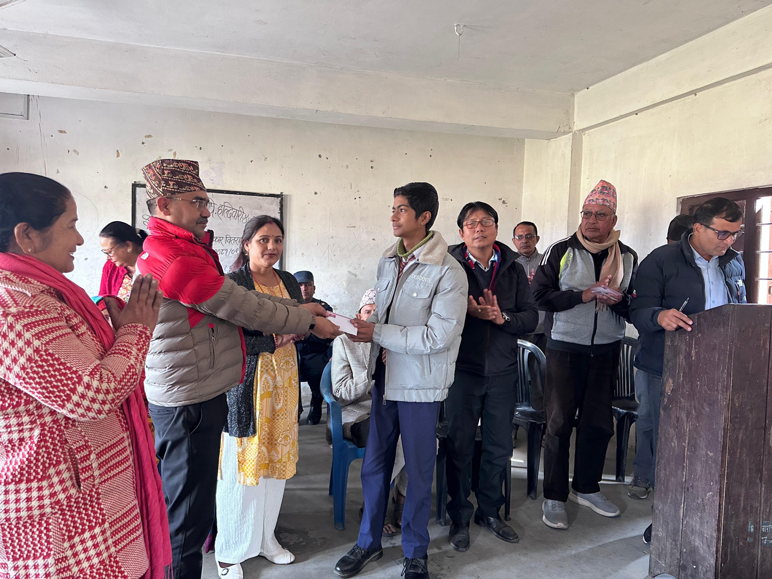 विद्यालयका पूर्व विद्यार्थी सुनिल विमली र उनकी धर्मपत्नी पुनम थपलिया विमलीले आफ्ना छोराछोरी औरा विमली र यजुर्ब विमलीको जन्मदिनको अवसरमा उक्त पुरस्कार वितरण गरेका हुन्। विद्यालय व्यवस्थापन समितिका अध्यक्ष खगेन्द्र आचार्यको अध्यक्षतामा सम्पन्न कार्यक्रममा प्रमुख अतिथिका रूपमा गाउँपालिका अध्यक्ष रविन्द्र प्रसाद लिङदेन, विशिष्ट अतिथि उपाध्यक्ष लक्ष्मी देवी मैनाली, र विशेष अतिथि वडा अध्यक्ष सन्त कुमार थापाले सहभागिता जनाए।