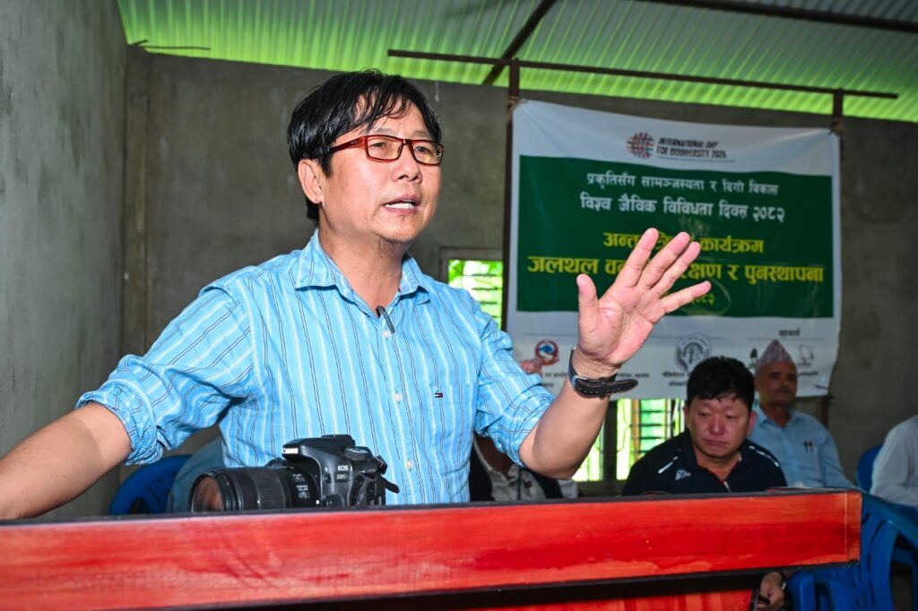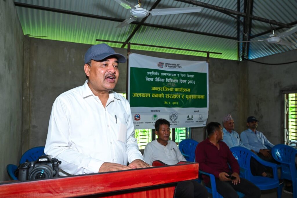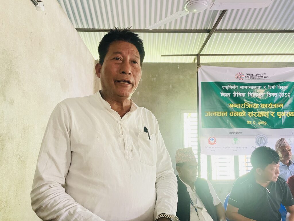 कार्यक्रममा फरेष्ट एक्सन नेपालका कार्यक्रम संयोजक डा लिलानाथ शर्माले जलथल वनको जैविक विविधता, यसको संरक्षण र चुनौतीहरु बारे जानकारी गराएका थिए।