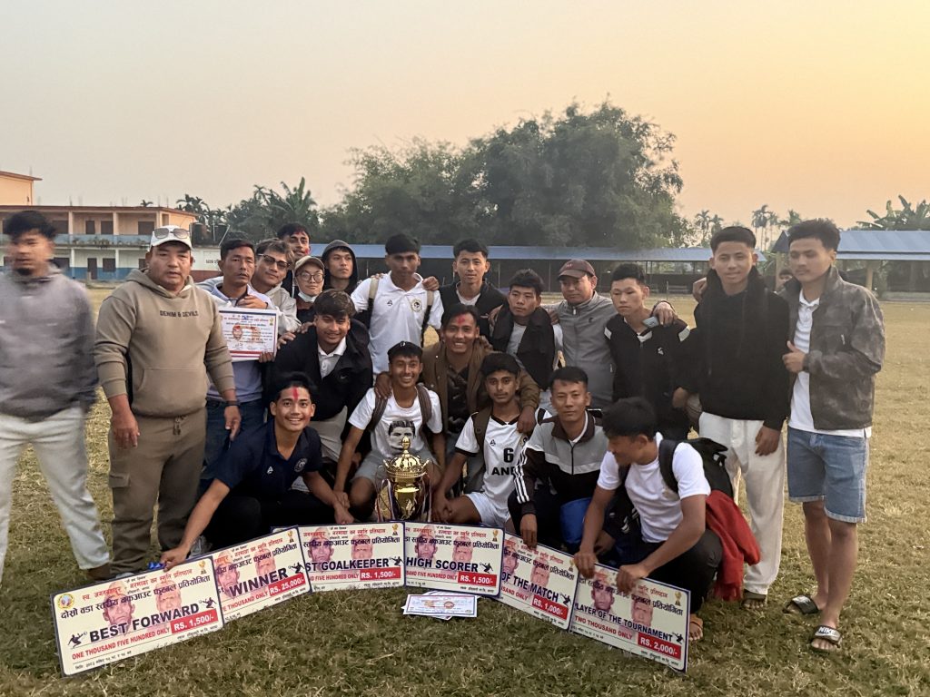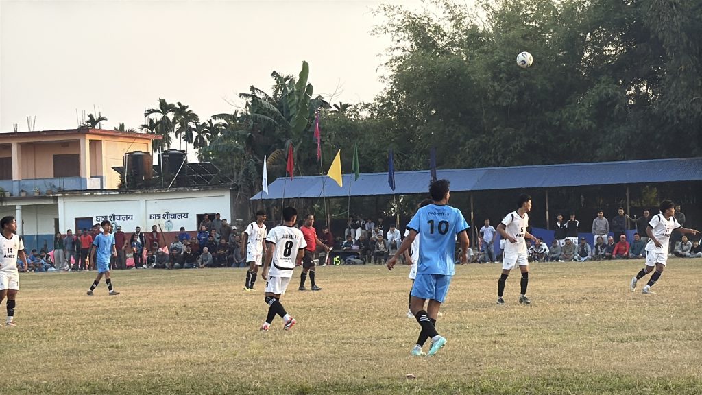 झापा ।हल्दीबारीमा संचालित स्व. जगत बहादुर तथा नरमाया वन स्मृति दोस्रो वडा स्तरीय नकआउट फुटबल प्रतियोगिता–२०८२ को उपाधि हल्दीवारी–५ ले हात पारेको छ । मंसिर १७ गतेदेखि जारी प्रतियोगितामा हल्दीवारी–५ ले हल्दीबारी–३ लाई ४–१ को अग्रतासँगै उपाधि हात पारेको हो ।