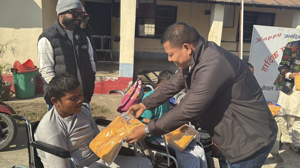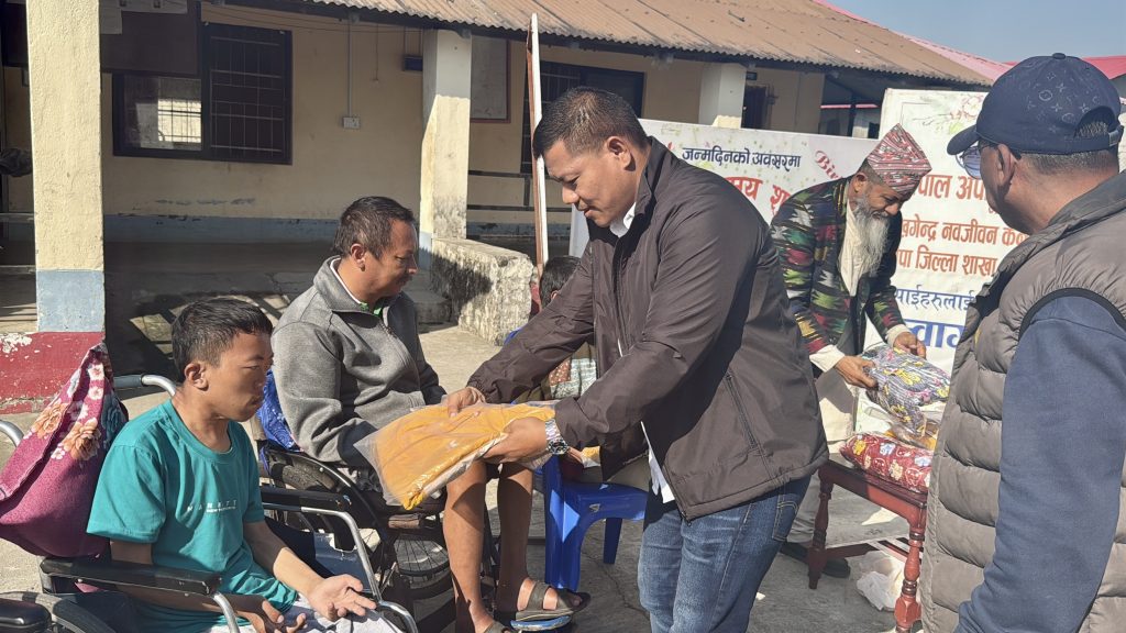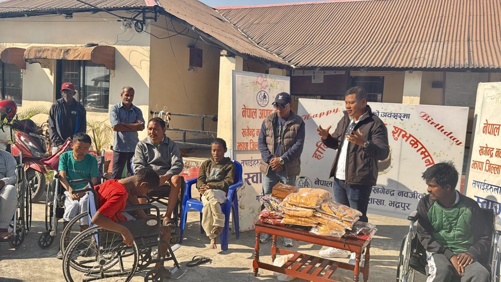 झापा। राप्रपा भद्रपुर नगर अध्यक्ष एवं उधोग वाणिज्य संघ झापाका वरिष्ठ उपाध्यक्ष राजकुमार राईले आफ्नो जन्मदिनमा नेपाल अपाङ्ग संघ, खगेन्द्र नवजिवन केन्द्र भद्रपुरका १६ जना शारिरिक अपाङ्गता भएका व्यक्तिहरूलाई जाडोको न्यानो कपडा वितरण तथा एकदिन को खाना खुवाएर जन्मदिन मनाएका छन्।