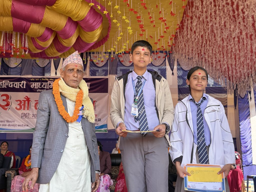 विविध खेलकुद प्रतियोगितामा उत्कृष्ट प्रदर्शन गर्ने खेलाडी तथा सहभागीहरूलाई ट्रफी, मेडल र प्रमाणपत्रद्वारा सम्मान गरिएको थियो। कार्यक्रममा प्रमुख अतिथि लिङ्देन, गाउँपालिका उपाध्यक्ष लक्ष्मीदेवी मैनाली, प्रमुख प्रशासकीय अधिकृत मानबहादुर वन, विद्यालयका संस्थापक प्रधानाध्यापक नरेन्द्रकुमार कार्की लगायतले विद्यालयको शैक्षिक गतिविधि, उपलब्धि र आगामी योजनाबारे मन्तव्य राखेका थिए।