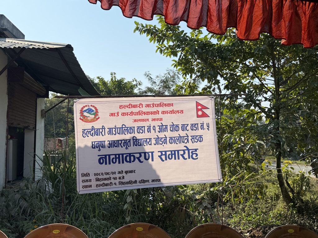 झापा।हल्दीबारी गाउँपालिका वडा नम्बर १ बाट धनुषा आधारभूत विद्यालयसम्म जोड्ने नवनिर्मित कालोपत्रे सडक आज नामाकरण गरिएको छ ।पूर्वउप्रधान ,जलस्रोत तथा उर्जामन्त्री राजेन्द्र लिङदेनबाट उक्त सडकको नाम भुल्कामार्ग राखिएको छ ।
