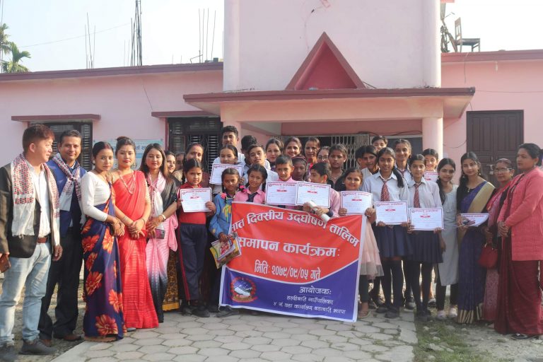 झापा। हल्दिबारी गाउँपालिका वडा नं ४ द्वारा आयोजित ७ दिवसीय क्षमता अभिवृद्धि तथा नेतृत्व विकास र उद्घोषण तालिम आज एक समारोहका विच समापन भएको